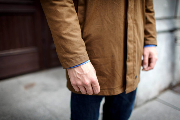 | Плащ DunderdonПлащ купил в берлинском магазине отличной шведской марки Dunderdon, которая выпускает вещи а-ля рабочая одежда. Он сделан из вощеного хлопка и идеально подходит для дождливой петербургской погоды, к тому же в нём очень удобно ездить на мопеде. Такая модель появляется в каждой коллекции, меняются только детали, например цвет подкладки. У меня этих плаща два — чёрный и коричневый, под настроение. |